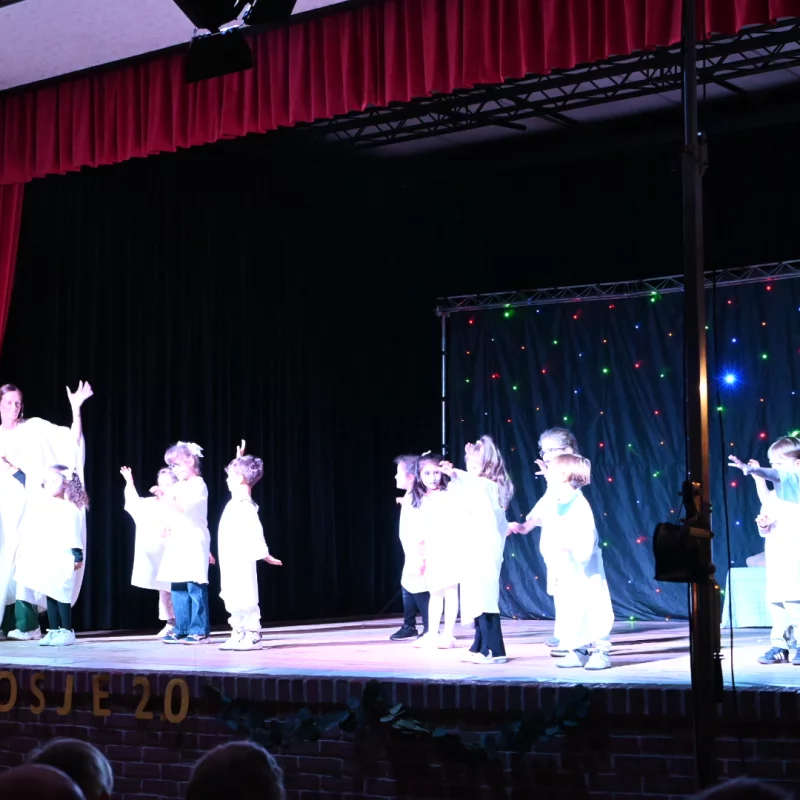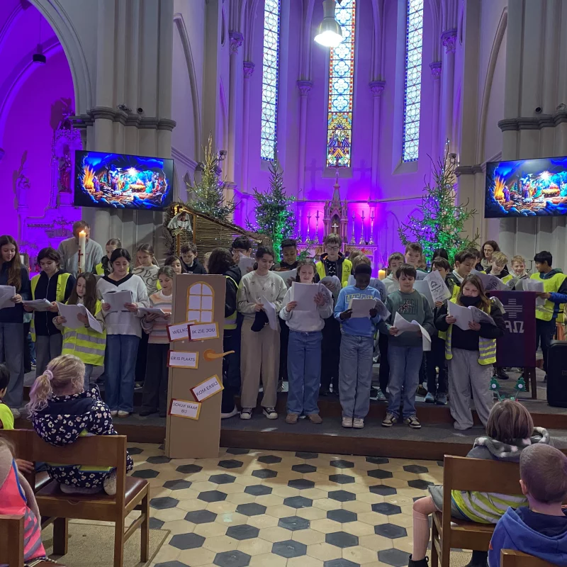 We gingen Sinterklaas en de Pieten opwachten langs de straat! Daarna iedereen richting de speelplaats... Tijd om toch eens aan SabotagePiet zijn oren te trekken.... maar wat bleek: er waren 2 SabotagePieten aan het werk geweest! Sinterklaas geloofde zijn oren niet en wou de Pieten onmiddellijk terug sturen naar Spanje... maar dat wouden de kinderen toch ook niet! Sinterklaas gaat ze extra klusjes in Spanje laten doen als straf voor hun flauwe Sabotage-"moppen"!