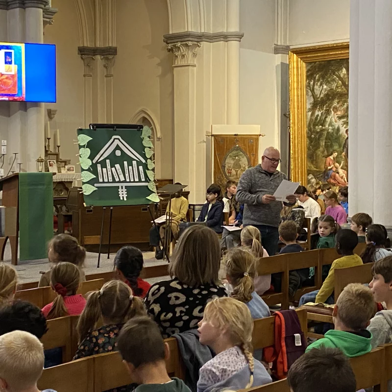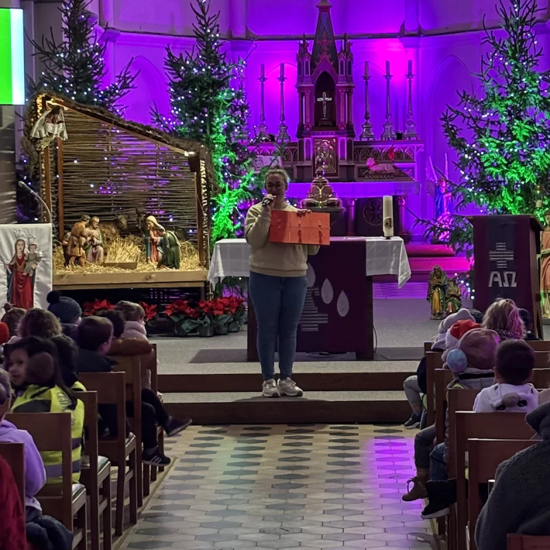 Daarna gingen Sinterklaas en de Pieten in elke klas langs. Iedereen toonde zijn ontworpen inpakpapier en er werden klascadeautjes uitgedeeld.