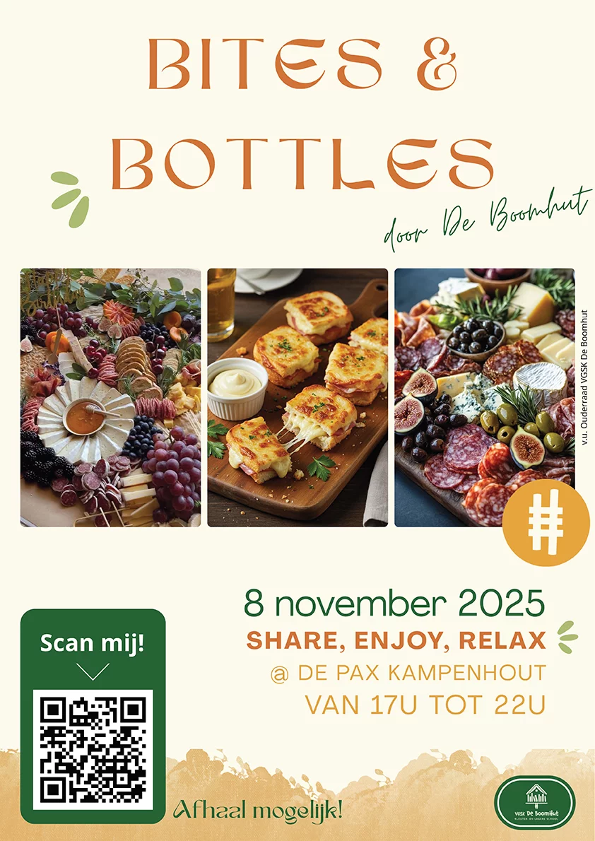 Zaterdag 8 november organiseert de ouderraad hun eetdag. Dit jaar kozen ze voor een heel nieuw concept: "Bites & Bottles".